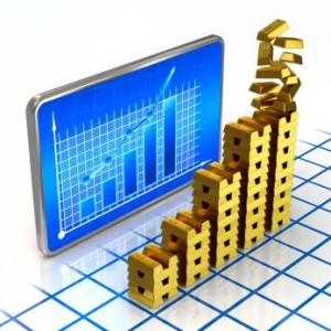 A graph with gold bars in the foreground